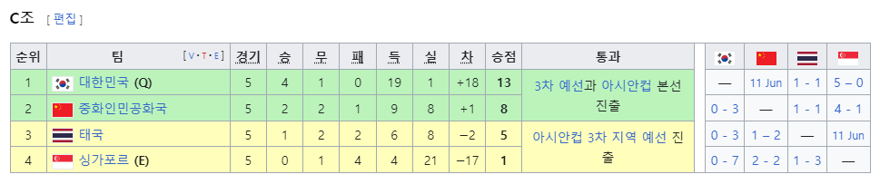 📌 대한민국은 C조에 중국,태국,싱가포르와 편성되었습니다.