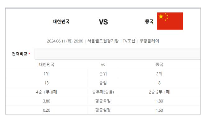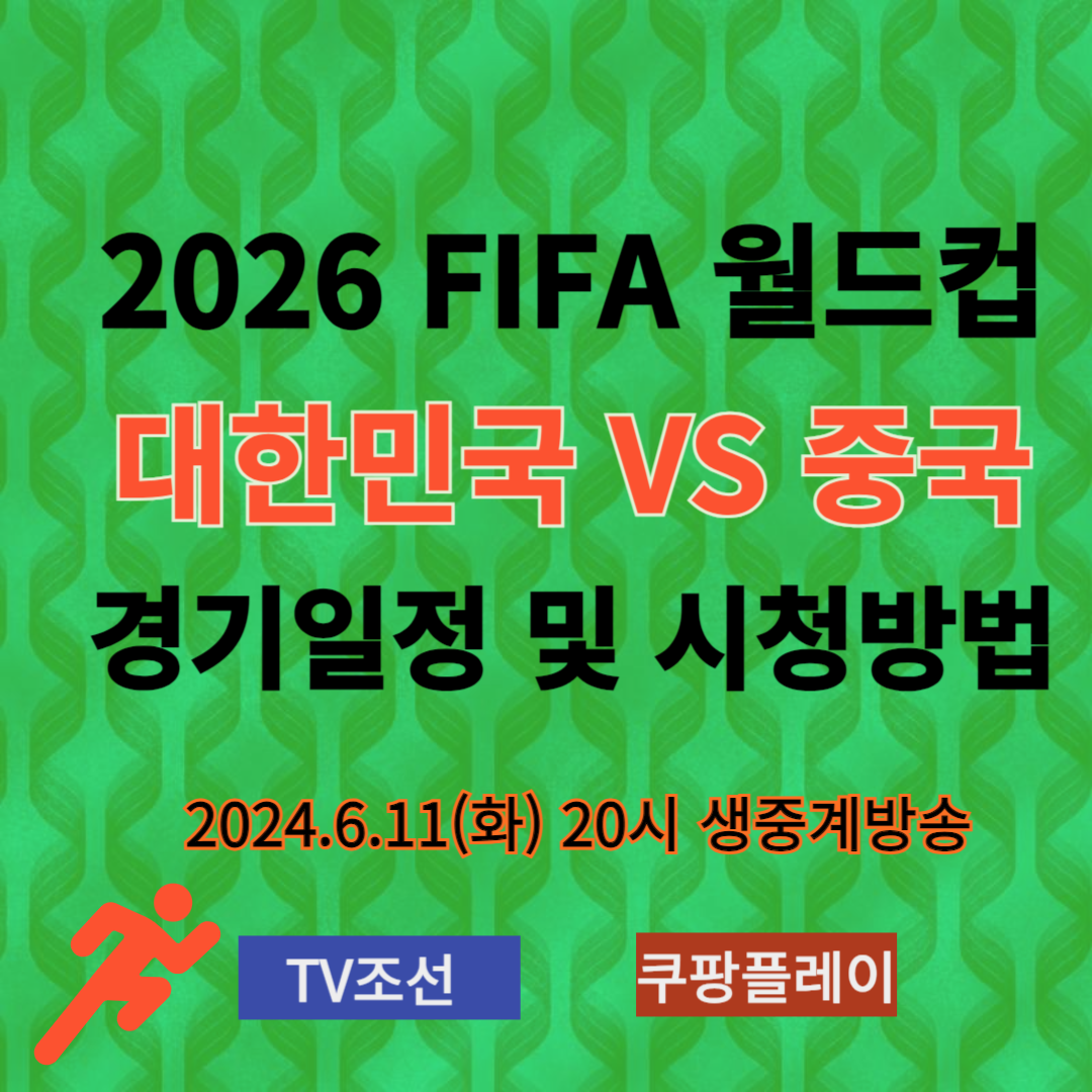🟩 2026 FIFA 월드컵 아시아 2차 한국과 중국전은 TV에서 시청하려면 TV조선에서 시청이 가능하고 OTT플랫폼에서는 유일하게 쿠팡플레이에서 생중계됩니다.