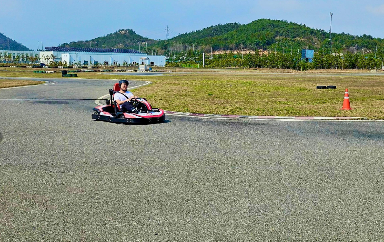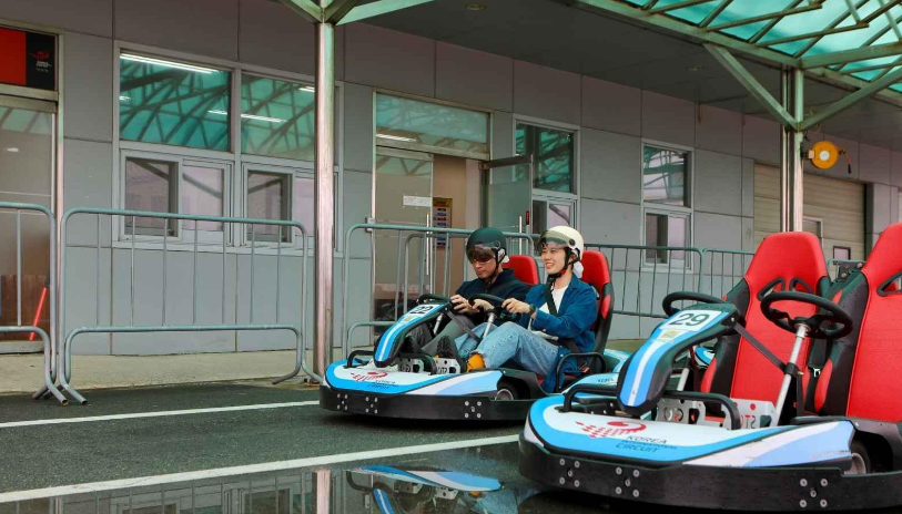 ① 나들이하기에 좋은 계절이 왔다. 나른해진 일상을 날릴 짜릿한 경험을 할 수 있는 곳을 찾다 보니 땅 위에서 속도감을 마음껏 즐길 수 있는 안전한 레저스포츠가 또 이만한 게 있을까 싶다.'영암국제카트경기장'은 F1의 서킷의 축소 버전이라 할 수 있는 1.222킬로미터 길이의 트랙을 보유하고 있어 카트를 좋아하는 마니아들에게 인기가 높다. F1머신에 비한다면 소형자동차로 보이겠지만 스피드와 승차감, 엔진소리는 F1머신에 못지않다. 카트 체험전 안전사고 예방을 위해 신청서를 작성하고 교욱참여도 필수이다. 이때 안전 헬멧 착용도 필수이고 페달을 밟기 불편한 하이힐이나 슬리퍼를 신고 온 이들을 위해서 신발도 빌려준다. 아이와 함께 2인용 카트를 타는 보호자는 페달이 있는 좌석에 앉으면 된다. 엔진소리와 함께 심장박동수도 올라가기 시작하고 엑셀러레이터에 발을 올려 힘을 주면 카트가 미끄러지듯이 트랙을 달린다. 1회 승차하는 10분 동안 대개 트랙을 4~5회 반복 주행하며 카트의 매력에 흠뻑 빠지게 된다.