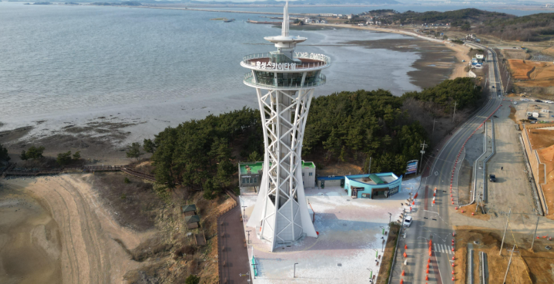 ② 남당항에서 차로 5분, 새로운 명소인 홍성 스카이타워도 그냥 스쳐 지나가면 후회할지도 못 든다. 옛 속동전망대가 있던 자리에 새로 지어진 65미터의 높이에 엘리베이터를 타고 정상에 올라가면 죽도부터 안면도까지 천수만의 풍경이 한눈에 들어온다. 이곳의 하이라이트는 아찔한 높이의 타워 둘레를 걸어보는 스카이워크, 바닷바람을 맞으며 타워 아래가 훤히 보이는 투명한 유리바닥을 걸으면 아찔한 스릴을 즐길 수 있다.