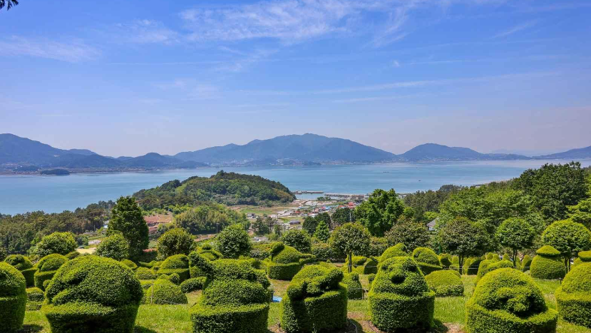 영화 '가위손'하면 떠오르는 장면이 있다. 주인공인 조니뎁이 가위손으로 거침없이 나무를 깎아서 공룡 모양으로 만드는 장면이다. 나무를 다듬어 다양한 모양의 작품을 만드는 것을 토피어리라고 한다. 남해 명소로 떠오른 토피아랜드는 우리나라 최초의 토피어리 정원이다.