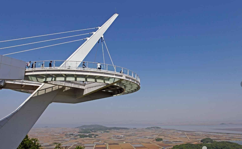화개정원은 교동도 화개산 기슭에 조성한 정원이다. 정상부 화개산전망대 스카이워크는 북한의 연백평야가 한에 들어온다. 바다 건너 끝이 북한 땅이라 뭉클하다. 다행인지 바다에는 철책이 없으니 한데 어울려 흐른다는 사실이 위로가 된다.